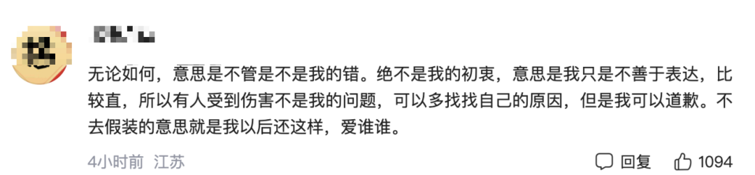 言外之意,争议已经不重要了,重要的是她本人愿意为被争议的结果而道歉。